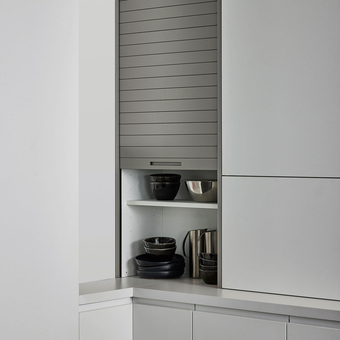 Unsere Jalousieschränke, wahlweise ausgestattet mit einer Glas- oder Kunststoff-Jalousie, vereinen Stil mit Funktionalität und verleihen Ihrer Küche einen zeitgemäßen Look.