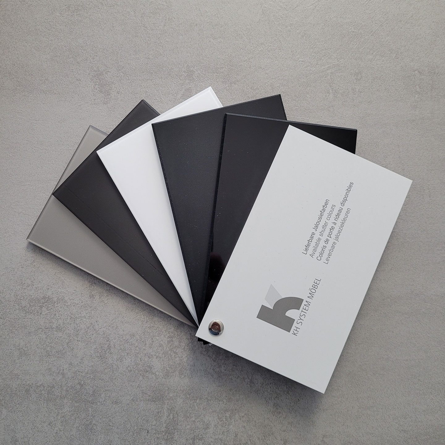 Mit seinen flexiblen Lamellen in den Farben Schwarz transluzent (Glas), Schwarz glänzend, Schwarz matt, Weiss matt, Graphit matt oder Edelstahlfarben ermöglicht der Jalousieschrank eine individuelle Anpassung an die Küche.