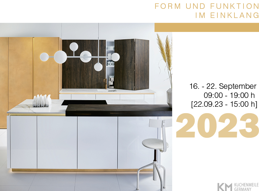 Vom 16.09.2023 bis 22.09.2023 begrüßen wir unsere Fachbesucher zur Küchenmeile 2023. Wir präsentieren als Highlight neue Küchenfronten in wertigen Farben und aufregenden Materialien.